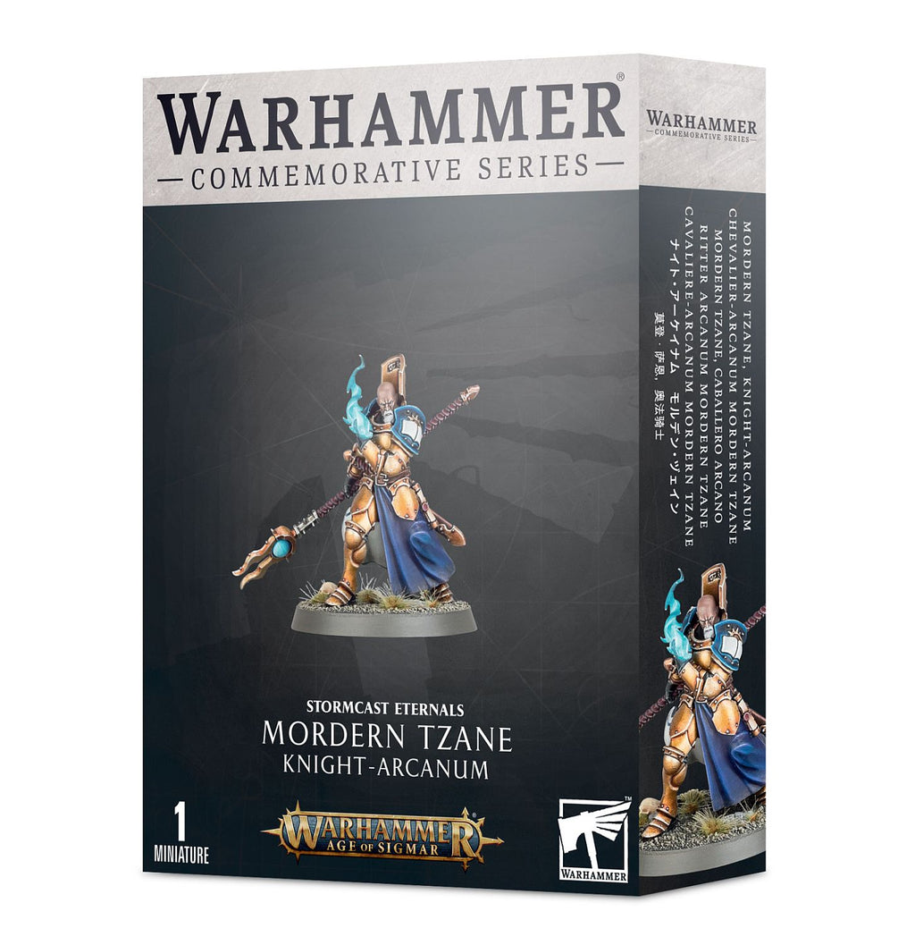 Celebrate the announcement of a new edition of Warhammer Age of Sigmar with this Warhammer Commemorative Series model, available exclusively right here. This multipart plastic kit builds an alternative Knight-Arcanum, a powerful Stormcast wizard. Clad in the high-collared Thunderstrike armour of his temple, he wields a comet-tipped Valedictor's stave in one hand – the other can either hold a mystical flame, or be cupped in an arcane gesture. Test your painting skills with this dynamic display piece, or add him to your Stormcast Eternals army.