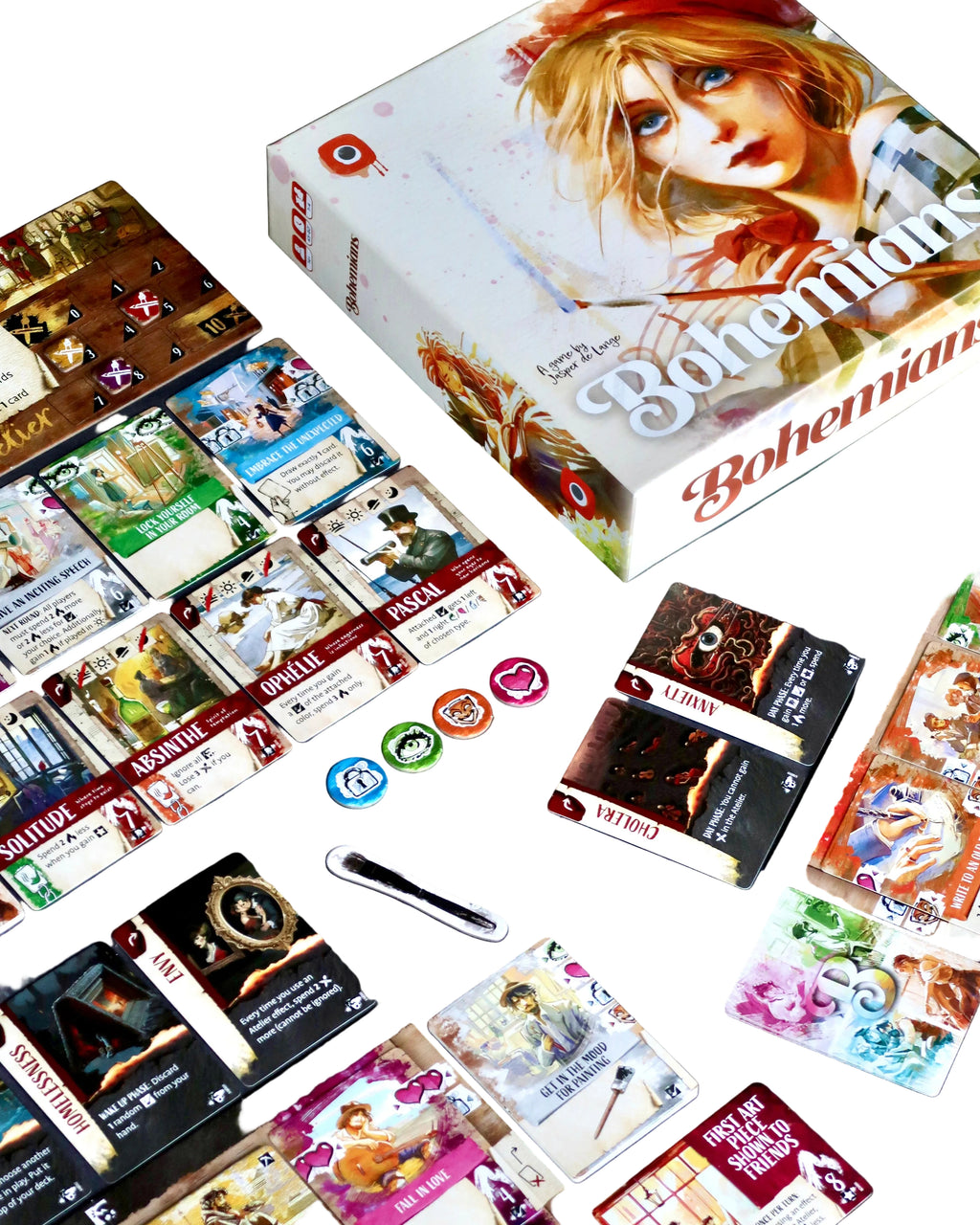 Bohemians is a game by debut designer Jasper de Lange. Players take on the roles of artists wandering the streets of Paris at the turn of the 19th and 20th centuries, striving to create masterpieces while facing the challenges of daily life.