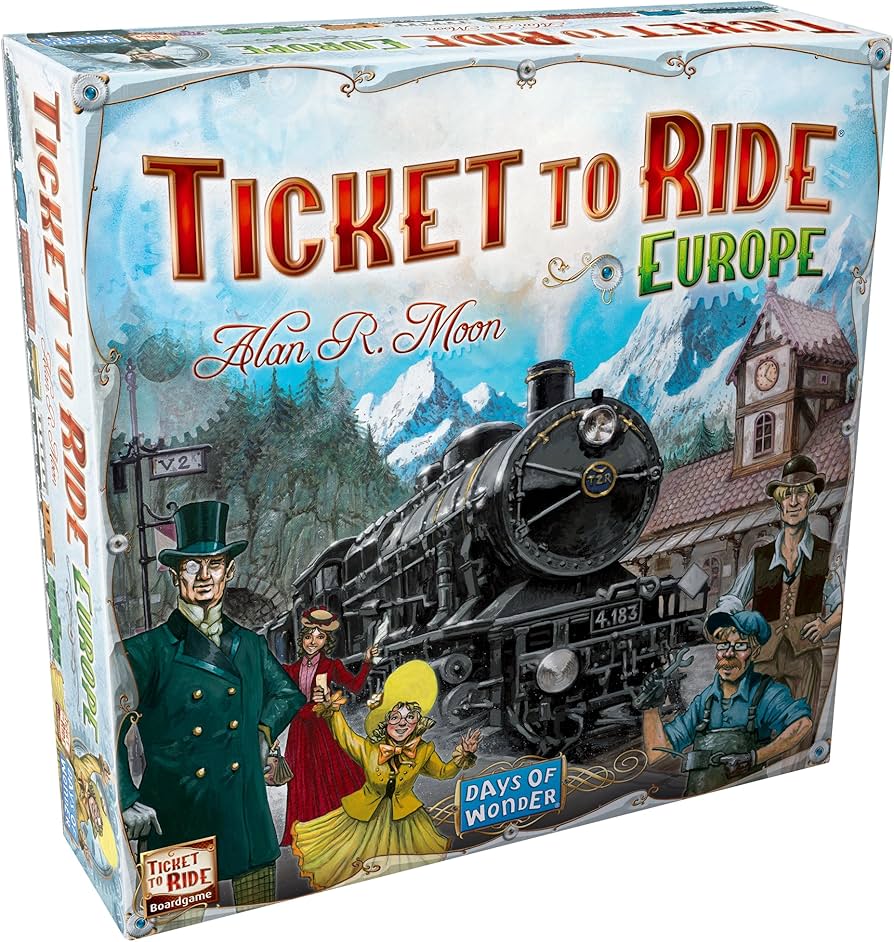 Ticket to Ride: Europe takes you on a new train adventure across Europe. From Edinburgh to Constantinople and from Lisbon to Moscow, you'll visit great cities of turn-of-the-century Europe. Like the original Ticket to Ride, the game remains elegantly simple, can be learned in 5 minutes, and appeals to both families and experienced gamers.